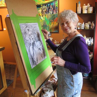 Purple Pelican Gallery owner Esa Everroad is the artist in residence. She has spent virtually all her adult life practicing a variety of art forms. She began selling her drawings to classmates as early as Junior high school for candy money. She is largely self-taught and because of that, her work is always unique and unaffected.